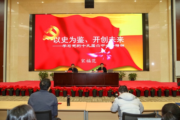 为深入学习贯彻党的十九届六中全会精神,扎实推进党史学习教育,11月19日,学院组织召开党的十九届六中全会精神解读讲座,邀请中共中央党校(国家行政学院)宋福范教授以“以史为鉴、开创未来——学习党的十九届六中全会精神”为题进行授课。院领导班子成员、全体教职工与财政部机关党校第73期处级干部进修班共同参加学习。
